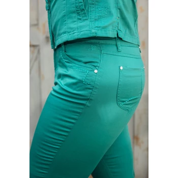 | Csodás színben készült ez a Lafei Nier vékony hímzett zsebű zöld női farmer nadrág. A zsebek mentén látható szolid hímzés egyedülállóvá, a vékony elasztánnal kevert pamut alapanyag pedig az egész napos viseléshez alkalmassá teszi ezt a különleges nadrágot. Enyhén szűkülő szár bősége, normál hosszal párosul, ami azonban probléma nélkül hosszra igazítható amennyiben szükséges.