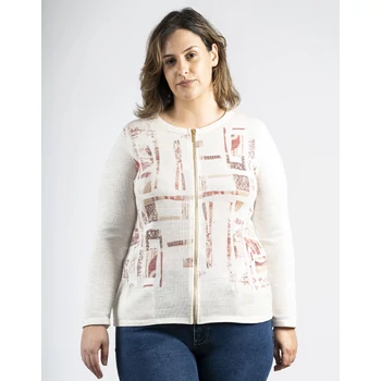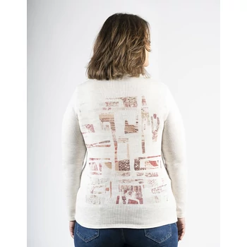 Mintás, cipzáras női kardigán – meleg árnyalatok, finom részletek Ez a hosszú ujjú, krémszínű női kardigán arany színű cipzárral és különleges, finoman strukturált mintázattal készült, amely elöl és hátul is megjelenik. A visszafogott, mégis karakteres grafika kellemesen meleg árnyalatokkal – rozsda, bordó, bézs – dobja fel az összhatást, miközben a kényelmes, rugalmas kötött anyag kellemes viseletet biztosít akár hűvösebb nyári estéken, akár átmeneti időben. Ez a modell a legnépszerűbb női kardigán fazonok közé tartozik, különösen azok körében, akik előnyben részesítik a praktikus, mégis dekoratív megoldásokat. A cipzáras záródás lehetővé teszi a réteges öltözködést, míg az egyenes szabás előnyösen formálja az alakot. Farmer Király tippje: Viselje középkék vagy fekete magasderekú farmerrel, és kombinálja egyszerű fehér vagy bézs felsővel – így igazán érvényesül a kardigán különleges mintája és kellemes árnyalatai!