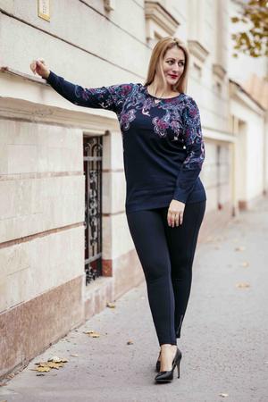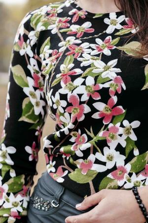 Egy "hidegebb" színtónusú kék virágmintás cashmere pulóver
